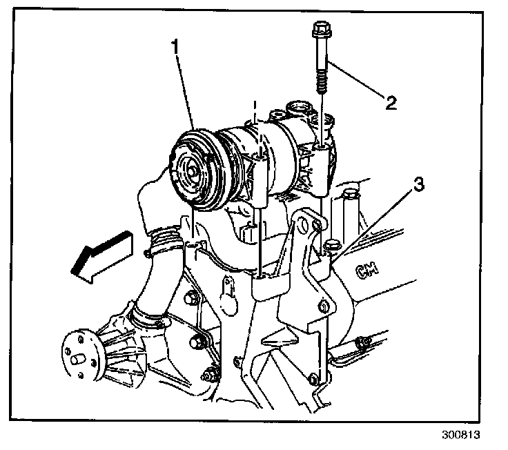 3. Install the compressor retaining bolts (2) to the mounting bracket (3).