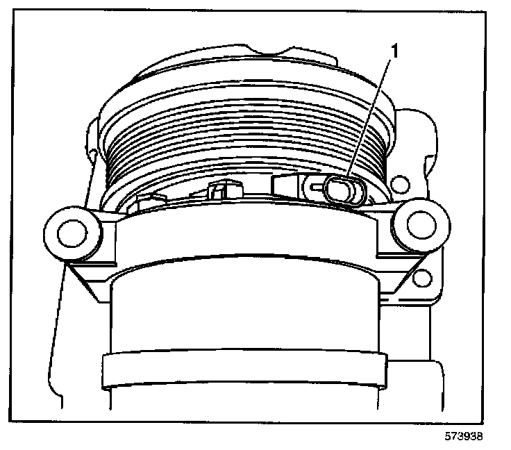 3. Disconnect the clutch coil electrical connector (1) from the compressor.