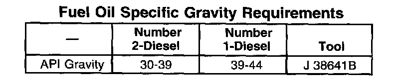 5. If the correct fuel is being used in the conditions listed in Fuel Quality and meets the number 1-Diesel or the number 2-Diesel fuel oil specific gravity requirements, the fuel may be OK. If not, the fuel should be replaced.