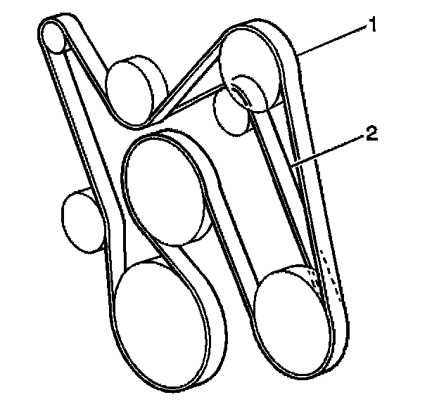 4. If equipped without A/C, install the drive belt (2) over the tensioner.