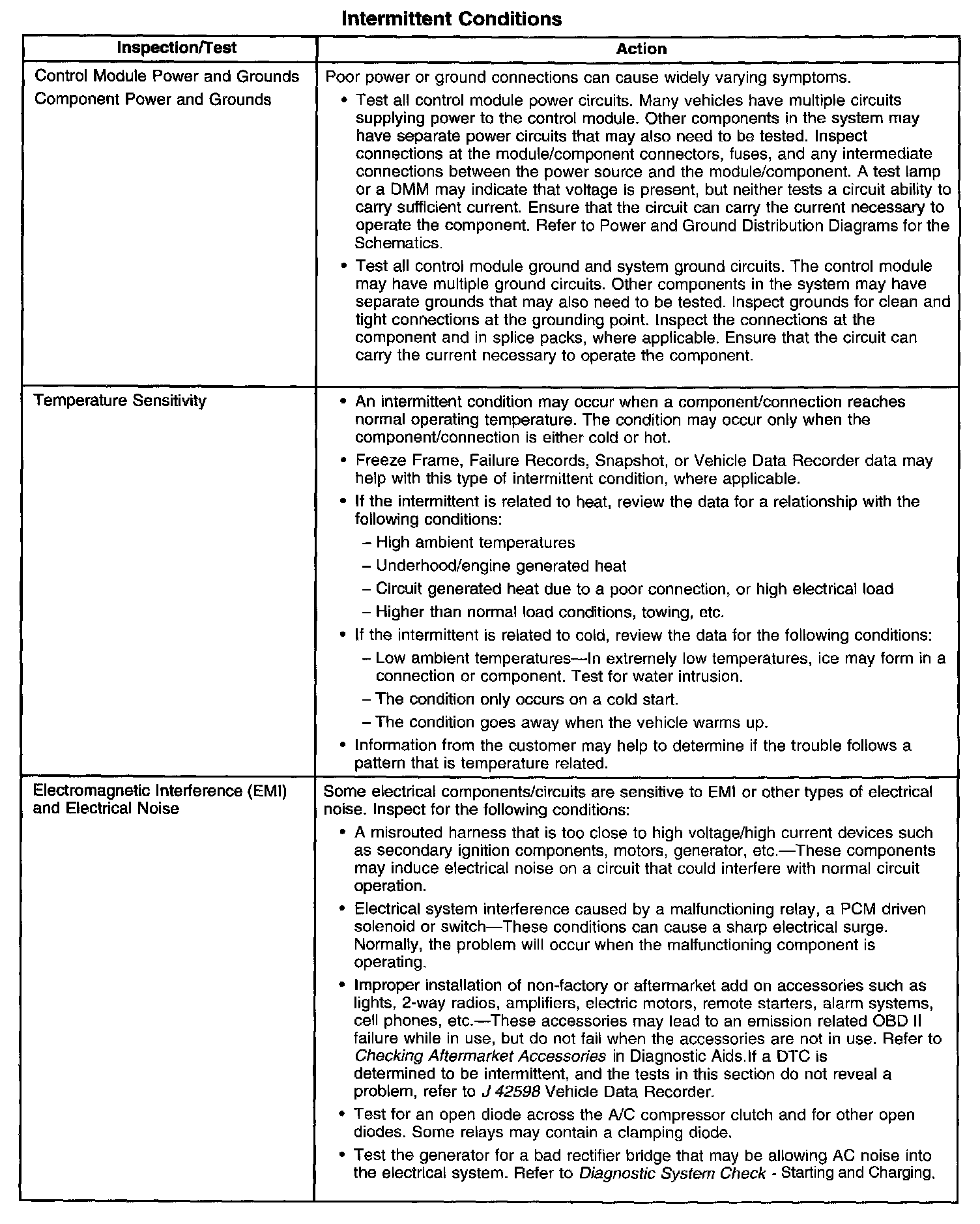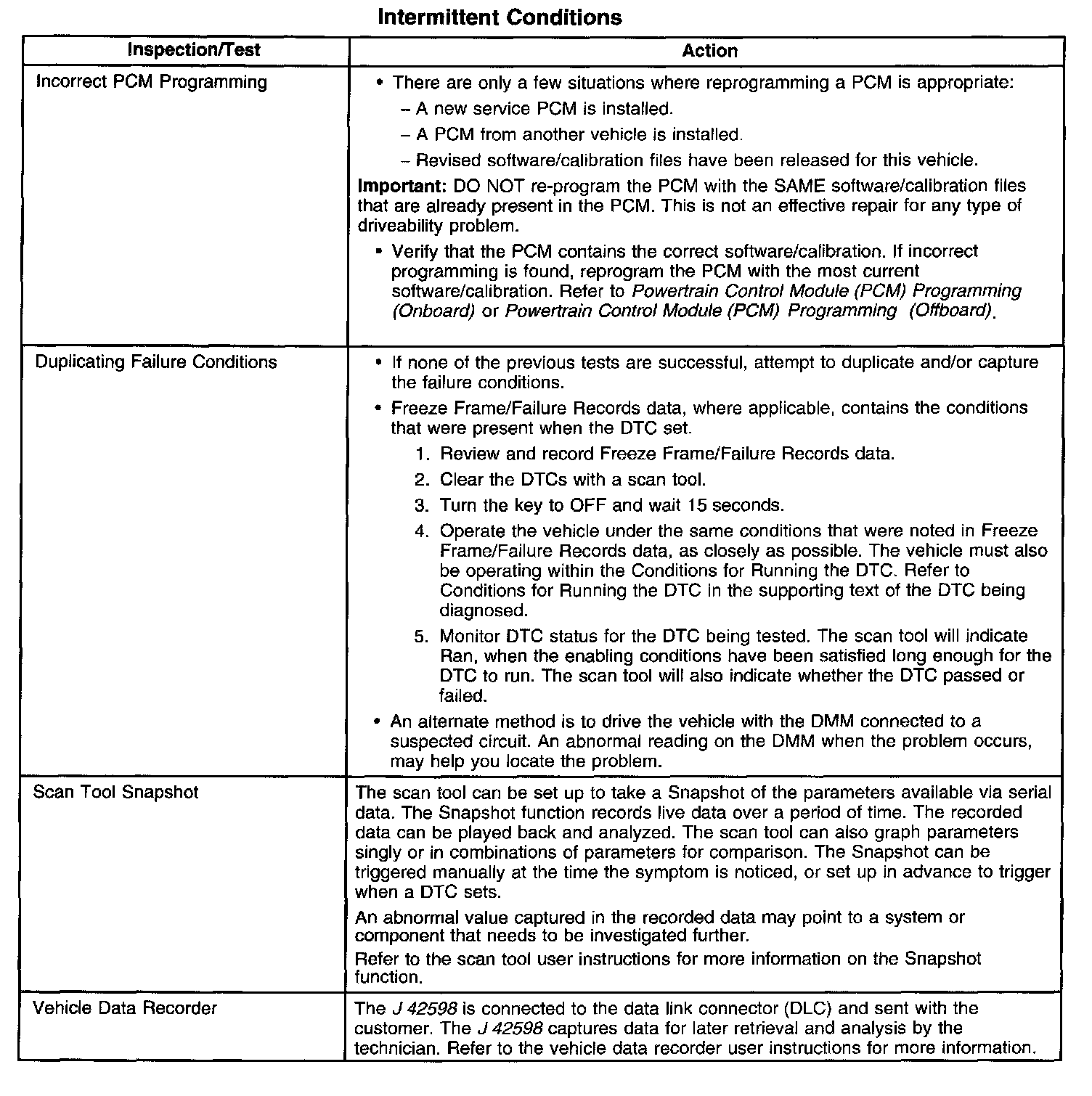^ Using a scan tool Freeze Frame/Failure Records can also aid in locating an intermittent condition. Review and capture the information in the Freeze Frame/Failure Records associated with the intermittent DTC being diagnosed. Drive the vehicle in the conditions that were present when the DTC originally set.