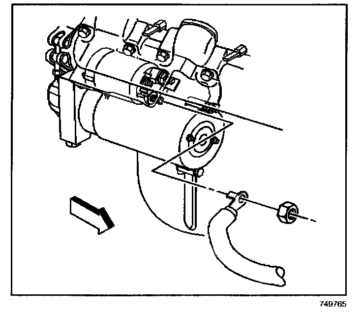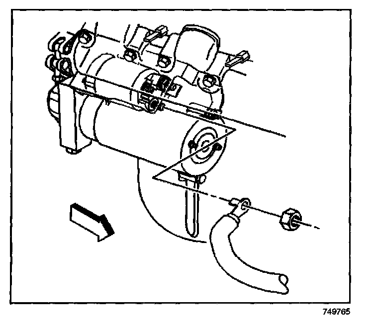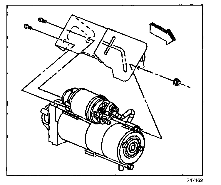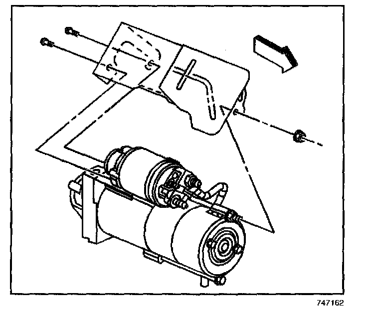 11. If necessary, remove the starter heat shield bolts, nut and shield.