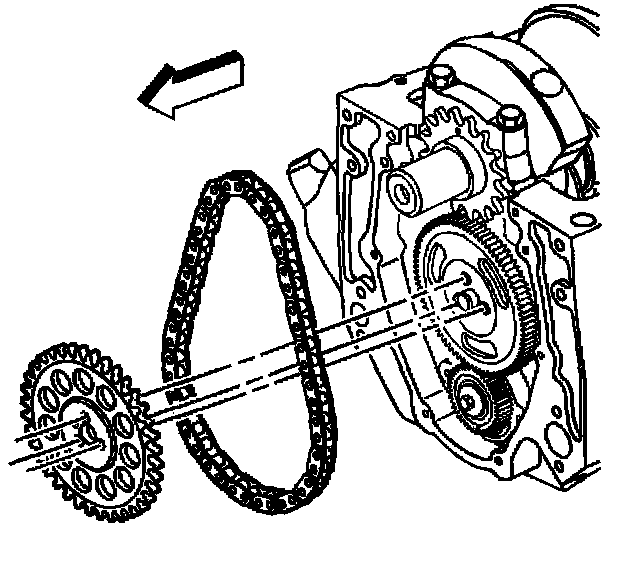 Notice: Align the timing marks before removing the timing chain. If it is necessary to turn either the camshaft or the crankshaft with the timing chain removed, loosen or remove the valve rocker arms. Turning either the crankshaft or camshaft with the timing chain removed may cause the pistons to contact the valves, resulting in damage.