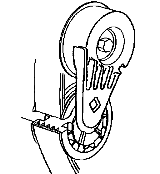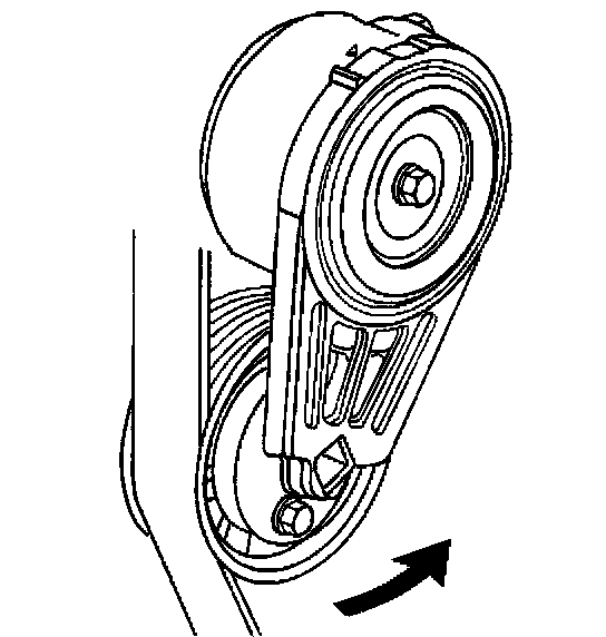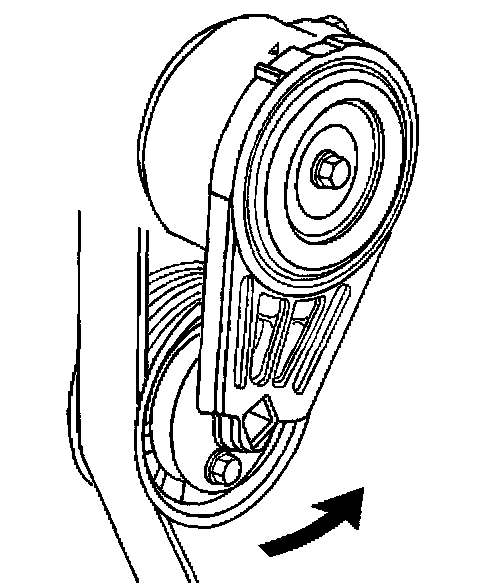 4. Install a 3/8 inch drive wrench on the drive belt tensioner arm and rotate the arm counterclockwise.