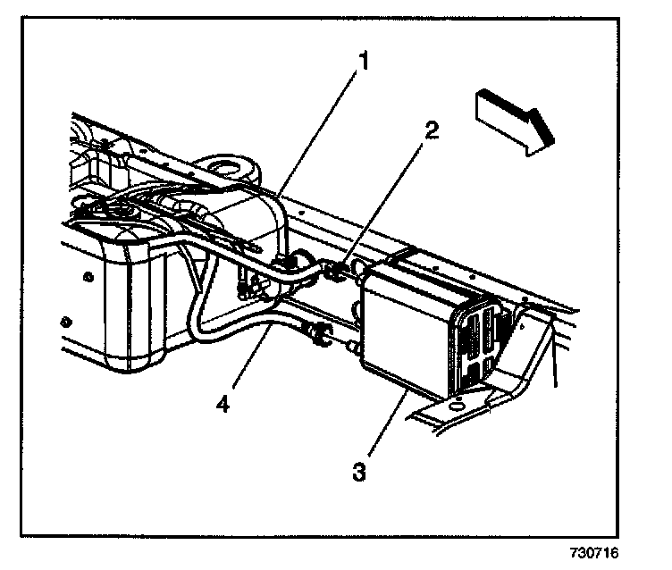 The canister (3) is filled with carbon pellets used to absorb and store fuel vapors. Fuel vapor is stored in the canister until the control module determines that the vapor can be consumed in the normal combustion process.