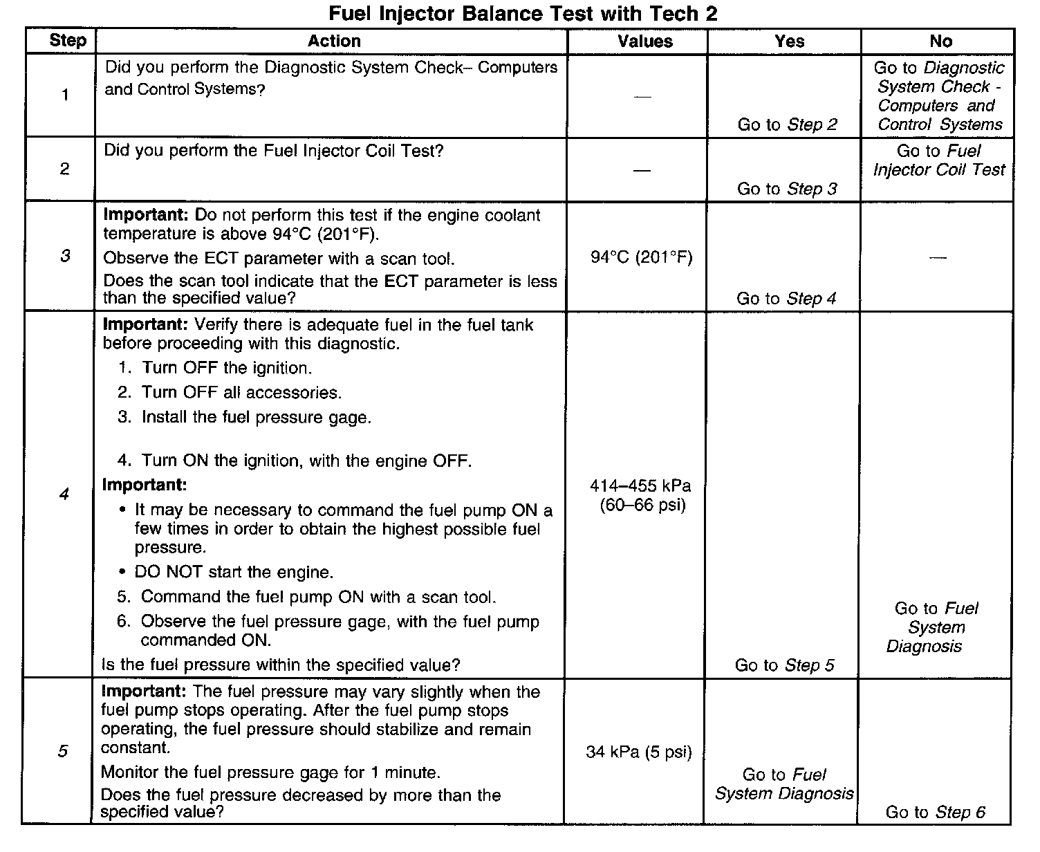 CIRCUIT DESCRIPTIONThe scan tool first energizes the fuel pump and then the injectors for a precise amount of time allowing a measured amount of fuel into the manifold. This causes a drop in system fuel pressure that can be recorded and used to compare each injector.