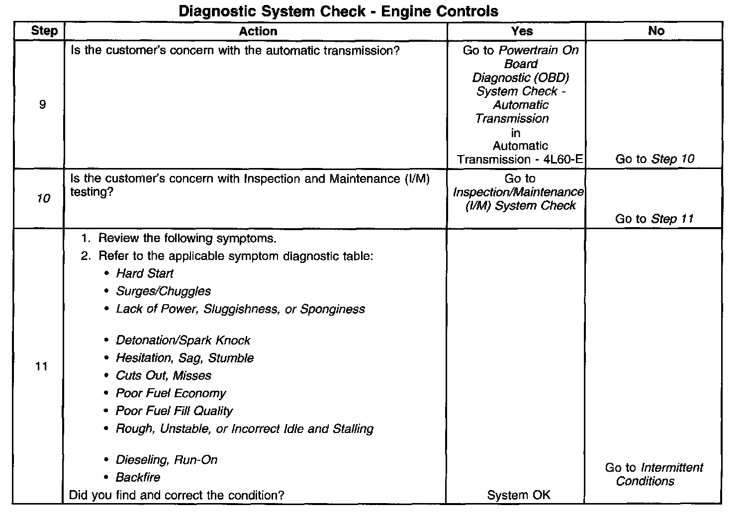 DESCRIPTIONThe Diagnostic System Check-Computers and Controls Systems is an organized approach to identifying a condition that is created by a malfunction in the powertrain control system. The Diagnostic System Check must be the starting point for any driveability concern. The Diagnostic System Check directs the service technician to the next logical step in order to diagnose the concern. Understanding and correctly using the diagnostic table reduces diagnostic time, and prevents the replacement of good parts.
