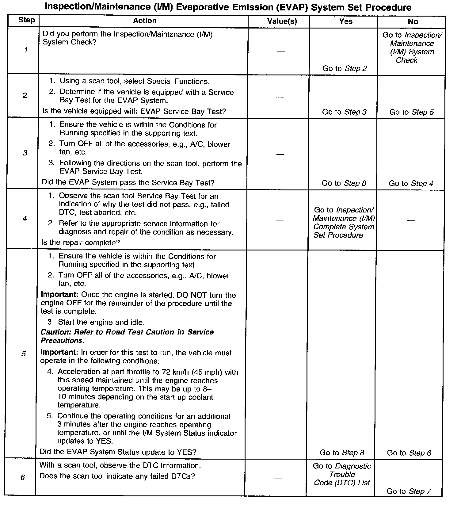 1. Make sure you perform the I/M System Check before performing this test. Failure to do so may result in difficulty updating the status to YES. Inspection/Maintenance (I/M) System Check