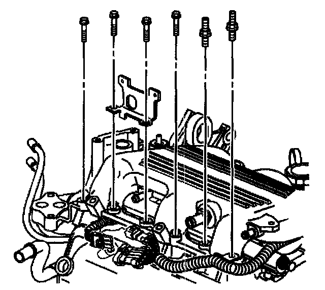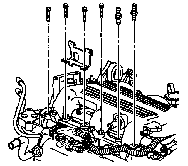 5. Install the right upper intake manifold bolts and the studs.