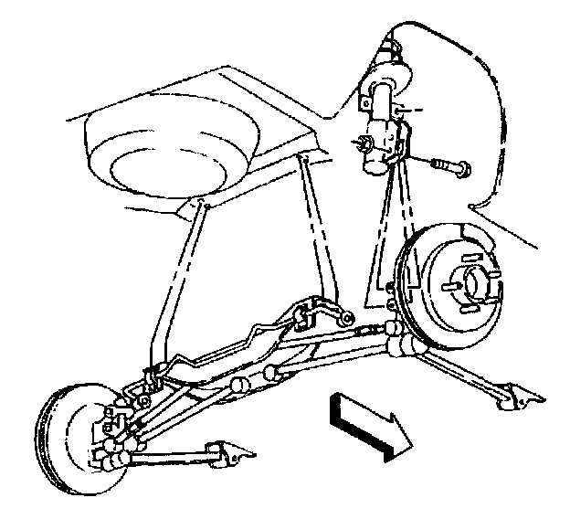 9. Lower the rear suspension support in order to gain access to the rear wheel spindle rod bolts.