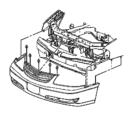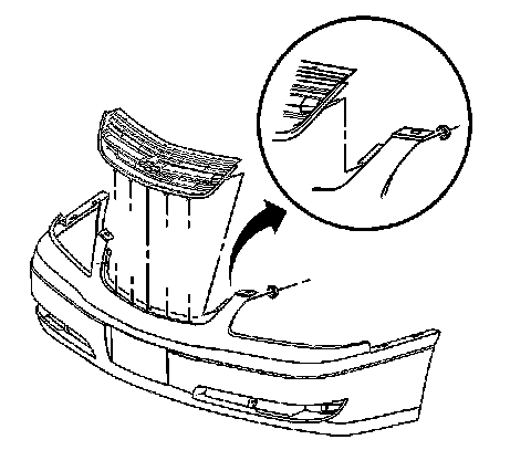 5. Pull forward and up to release the grille retainers. Remove the grille from the front bumper fascia.