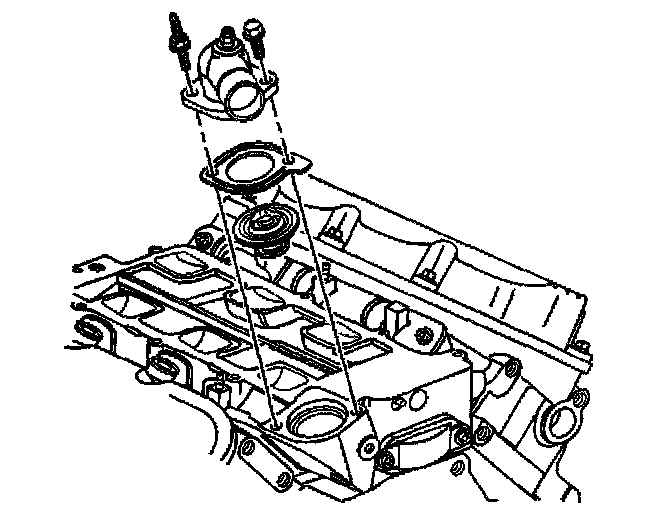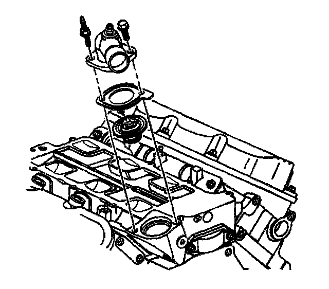 2. If removed, install the thermostat, the gasket, and the water outlet housing.