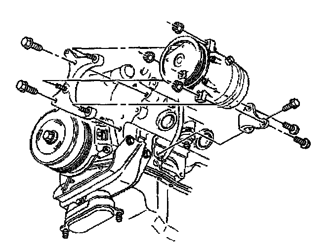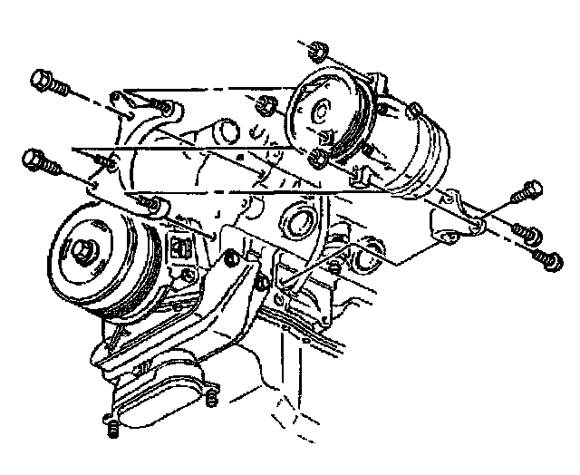 12. Install the A/C compressor bracket bolts.