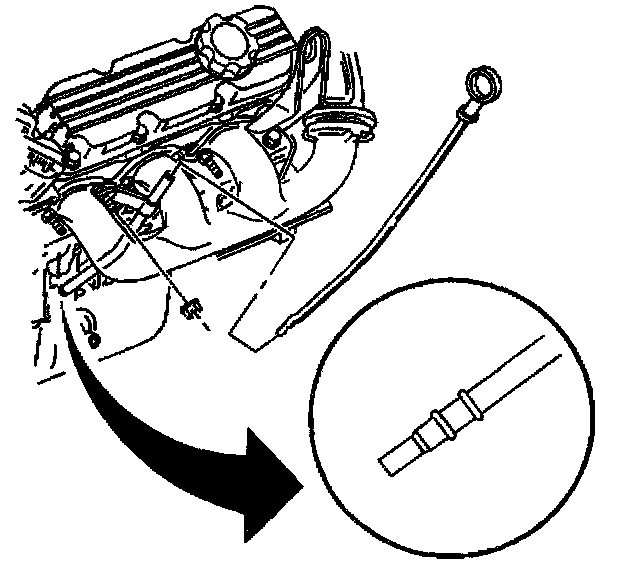 18. Install the tube nut on the oil level indicator to the exhaust manifold stud.