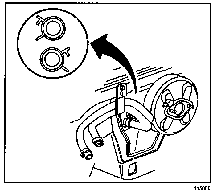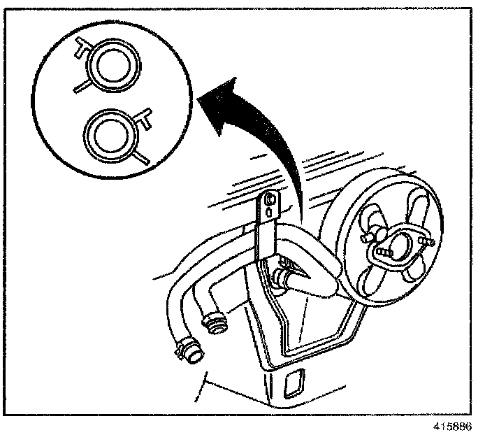 IMPORTANT: Reposition the heater core hose clamps in the indicated location.