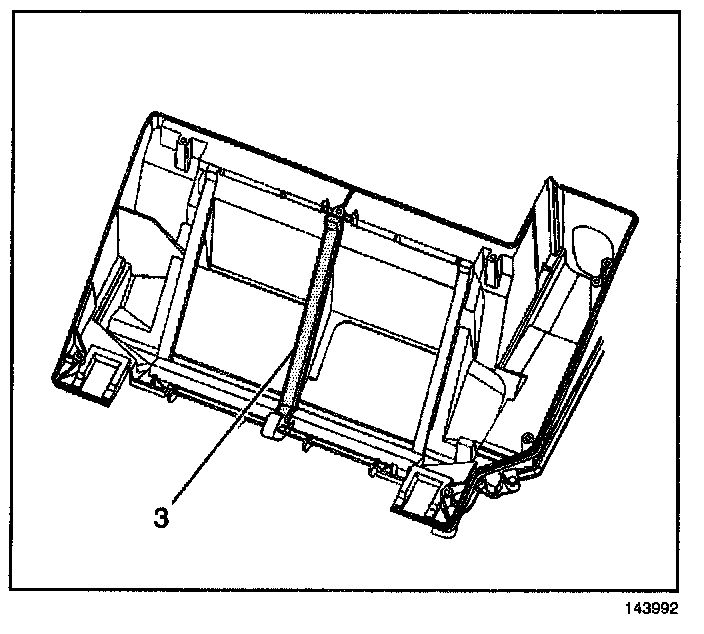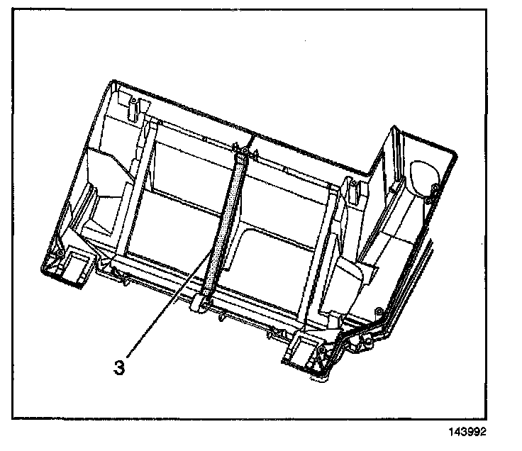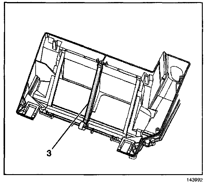 23. Remove and discard the heater core center seal (3) from the HVAC case.