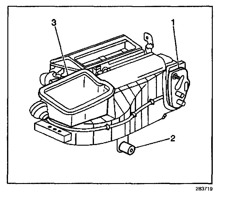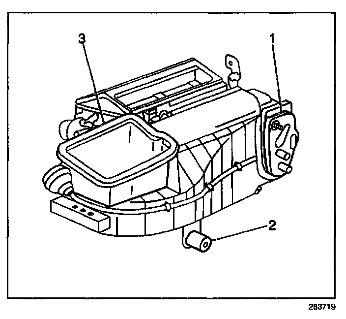 1. Install new seals (1,2,3) to the outer HVAC control module.