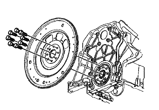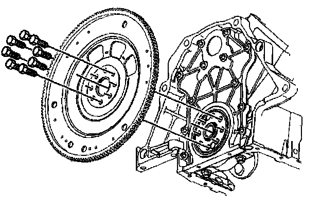 3. Loosen the 8 engine flywheel bolts.