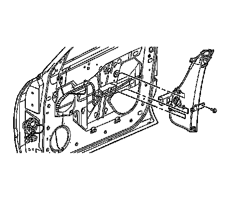 1. Install the top window regulator bolts half way into the window regulator motor and the rail.