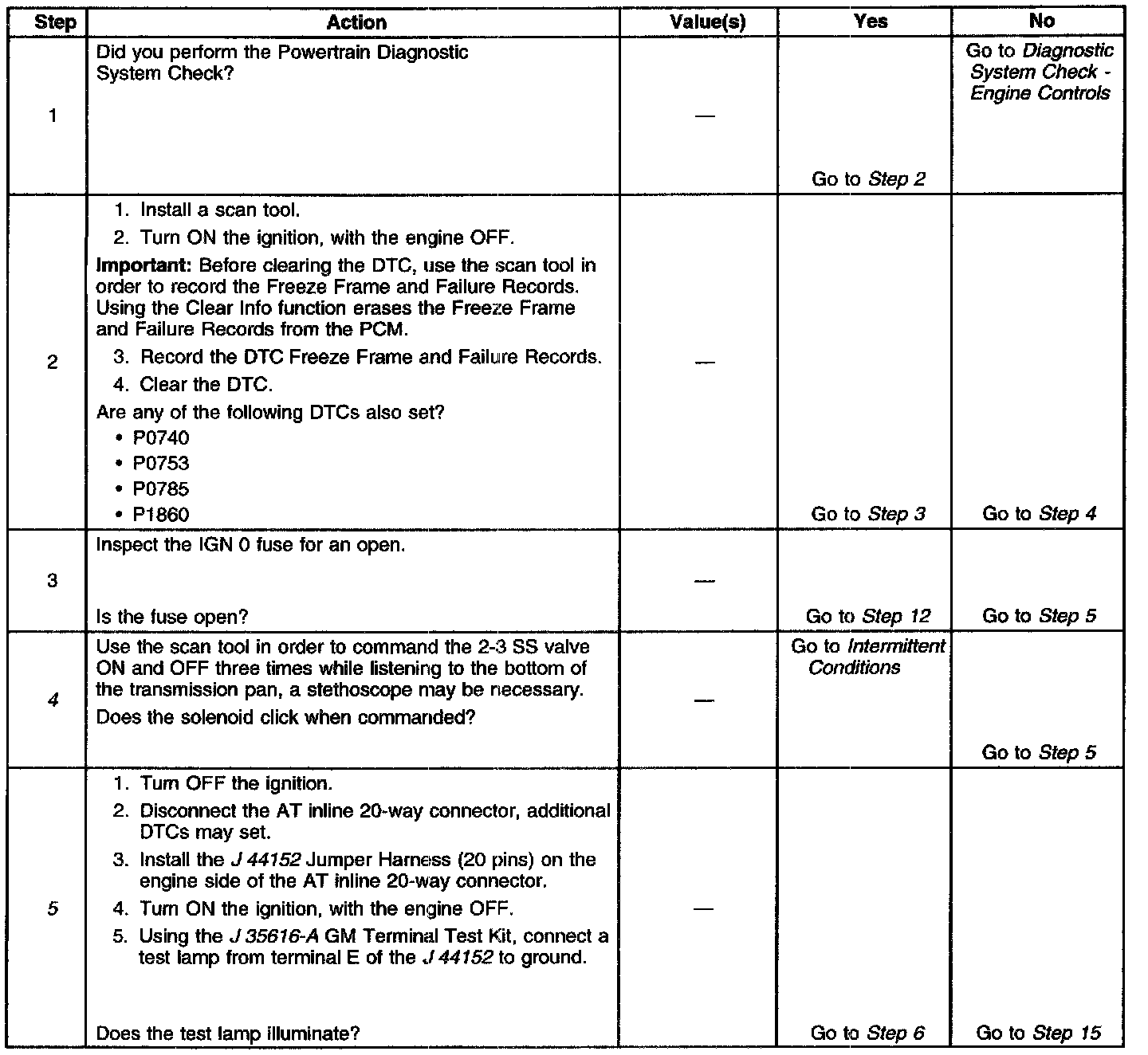 5. This step tests for power to the 2-3 SS valve from the ignition through the fuse.