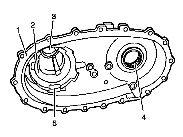 4. Inspect the front output shaft front bearing bore (3) for: Spun bearing Cracks