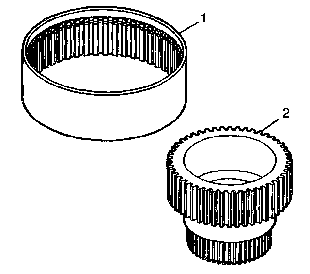 1. Clean the sun gear (2) and the annulus gear (1) in cleaning solvent and air dry.
