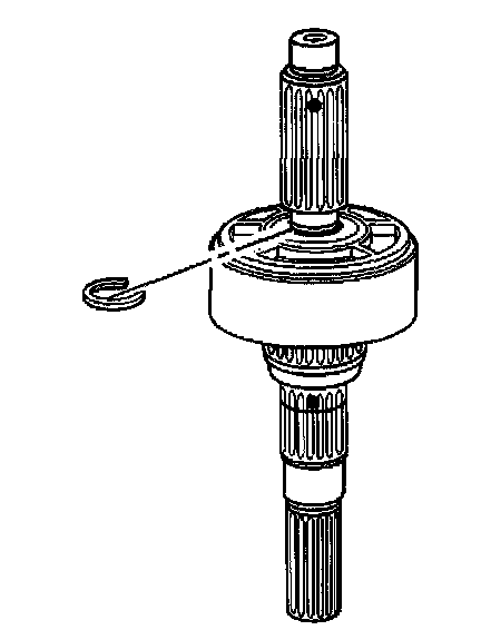 22. Insert a pair of snap ring pliers and release the outer retaining ring for the rear output shaft bearing.