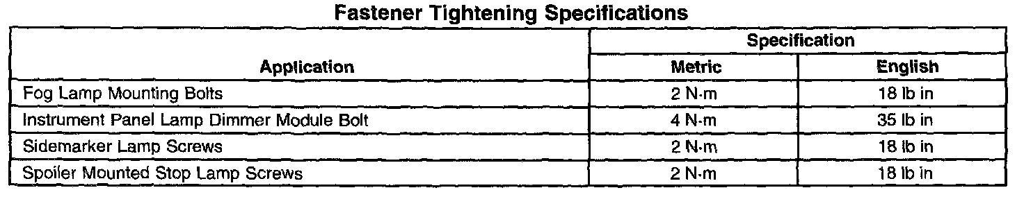 Fastener Tightening Specifications: