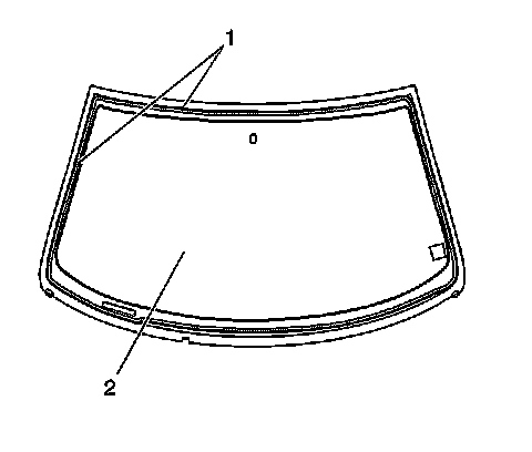 8. Grasp the corner of the windshield upper reveal molding (1) by hand and slowly pull the reveal molding away from the windshield.