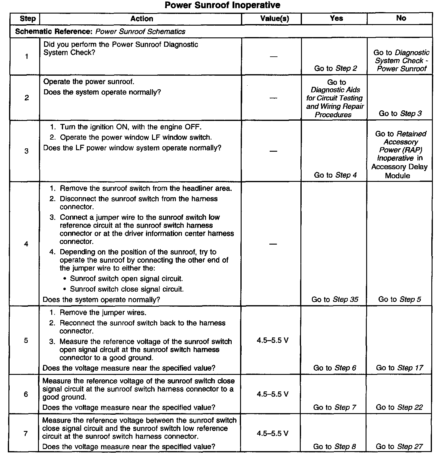 15. Checking the sunroof motor open and close control circuits when the sunroof module is idle, both circuits should be at ground potential.