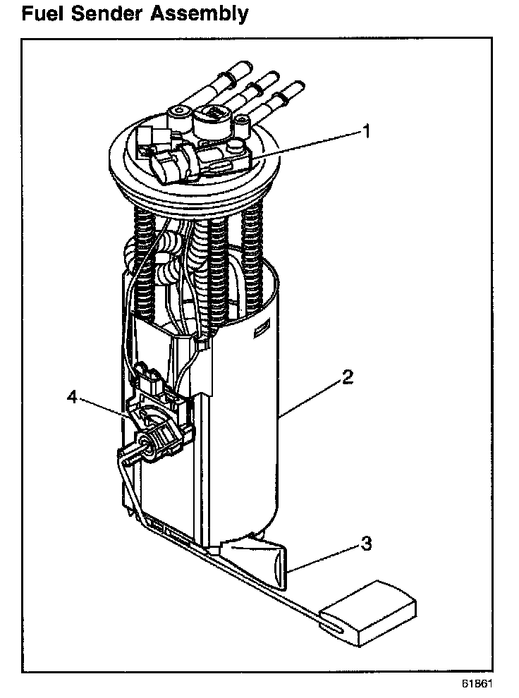 The fuel sender assembly consists of the following major components: