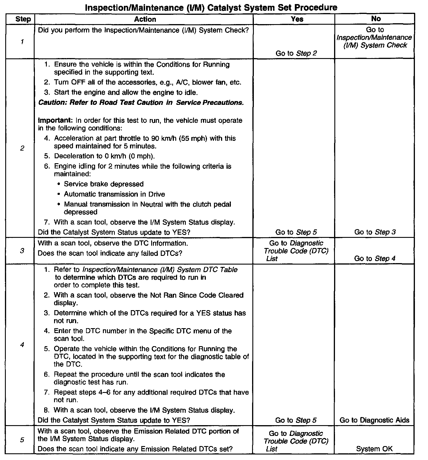 I/M Catalyst System Set Procedure
