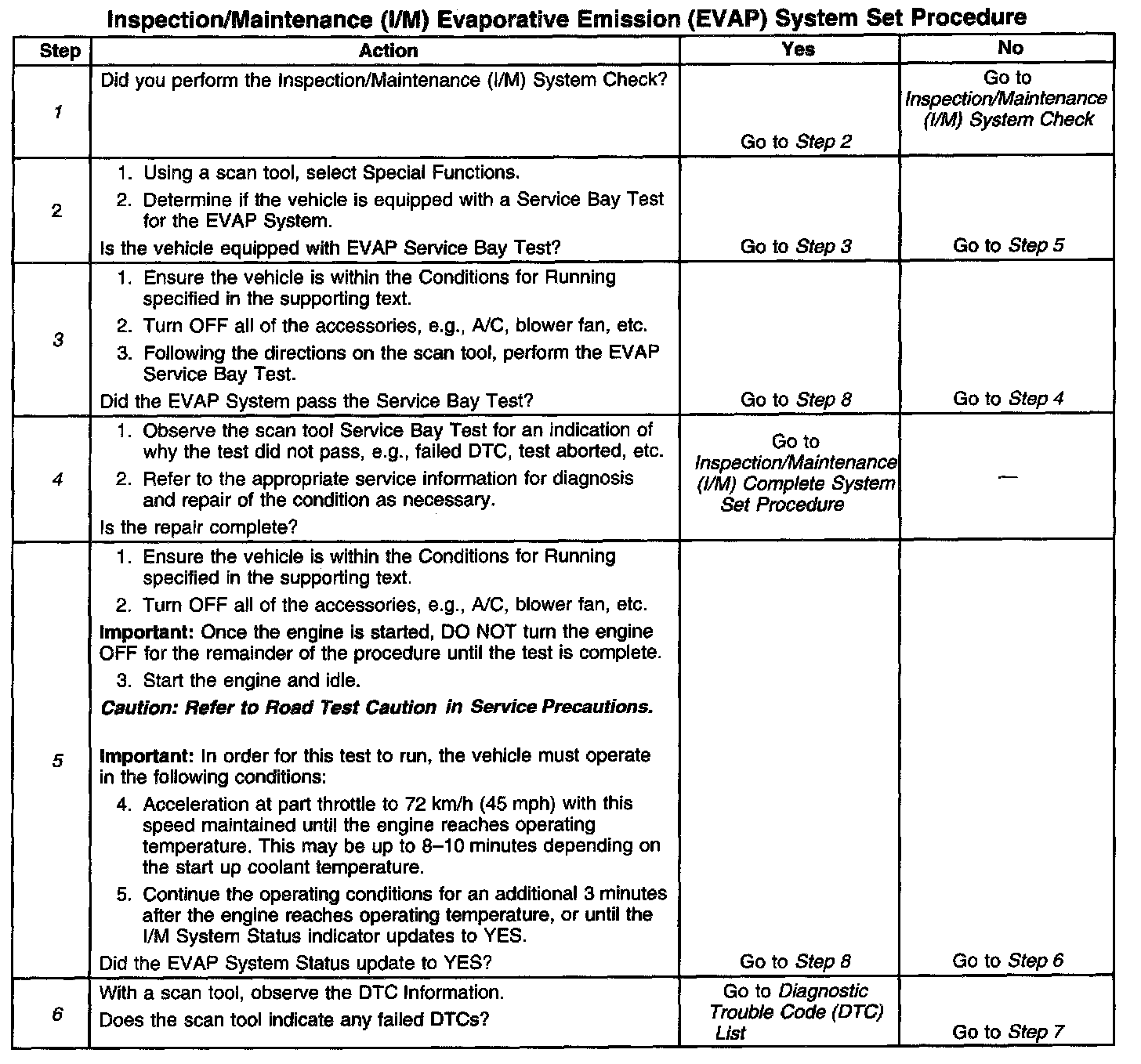 6. This step is to identify a first failure of a type B DTC. A DTC only appears on the I/M System Status display when the DTC becomes a MIL illuminating DTC. This occurs on the second failure of a type B DTC. A first failure of a type B DTC will not allow the I/M System Status to update to YES. Refer to Diagnostic Aids.