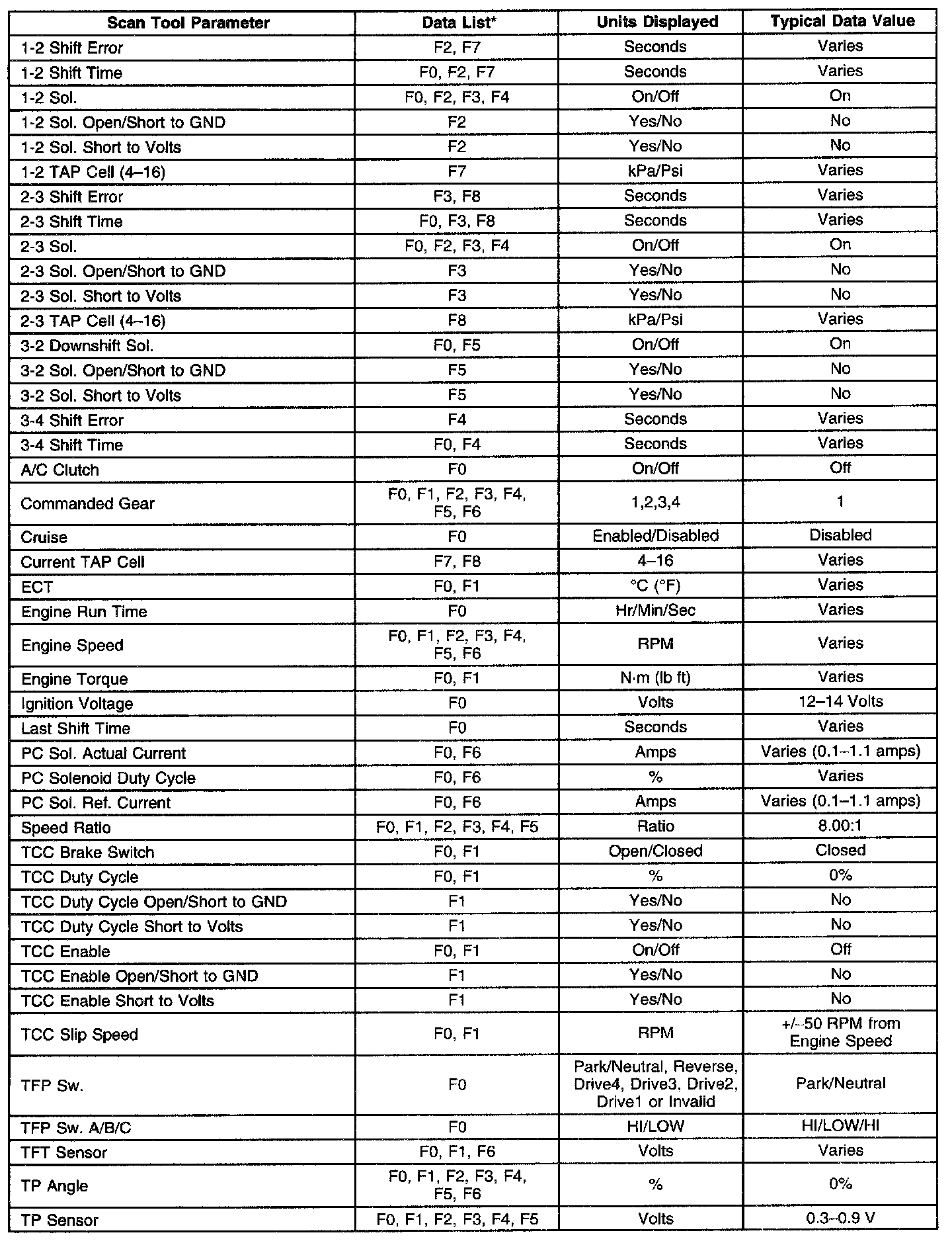 Transmission Scan Tool Data List (2.2 L)Use the scan tool data list under the following conditions: