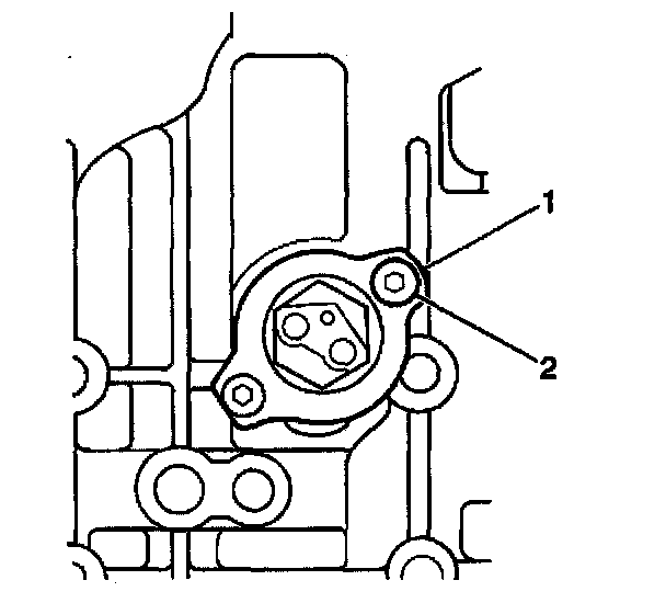 2. Insert the engine coolant heater (1) into the hole in the engine block.