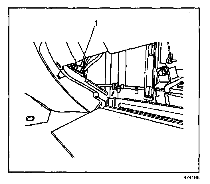 7. Remove the fresh/recirc control cable (1) at the blower case.