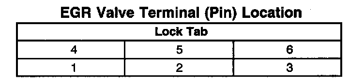 Use the table in order to locate the correct terminals to test during diagnosis. The table layout corresponds to the pin location of the EGR valve electrical terminals.