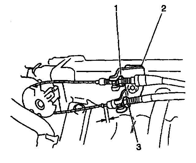 5. Remove the 1 bolt and the accelerator cable bracket (2) from the intake manifold.