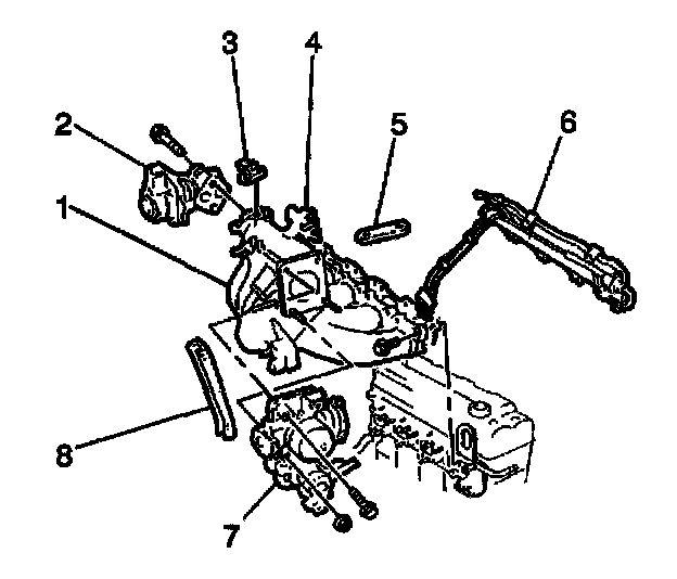 6. Install the fuel line bracket (9).to the intake manifold. Secure with 1 bolt.