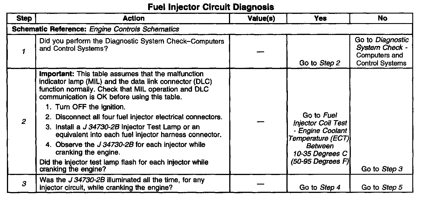 2. This step checks if the PCM is controlling the fuel injector signals.