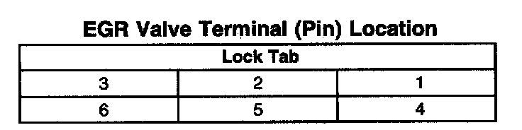 Use the table in order to locate the correct terminals to test during diagnosis. The table layout corresponds to the pin location of the EGR valve electrical terminals.