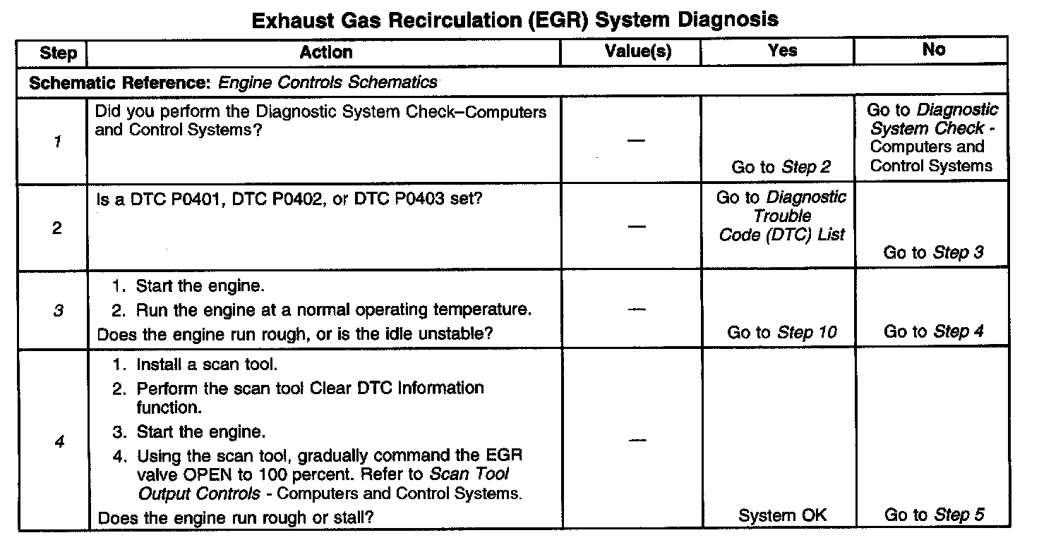 8. This step checks for a physically stuck EGR valve or plugged EGR passages.