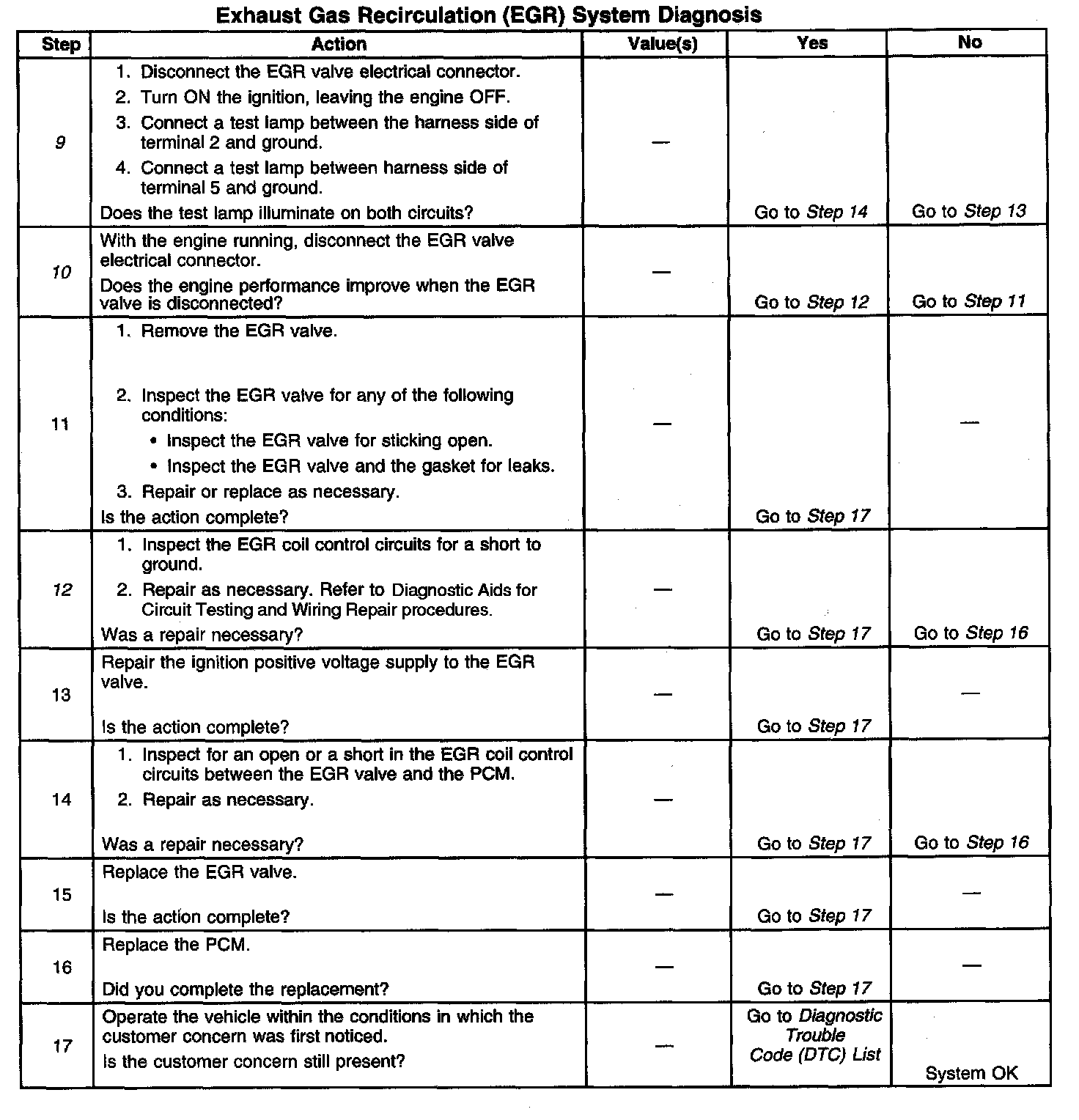 12. This step checks for an EGR valve control circuit that is shorted to ground. If the circuit wiring is OK, a faulty PCM with an internally shorted circuit can cause the EGR valve to be open.