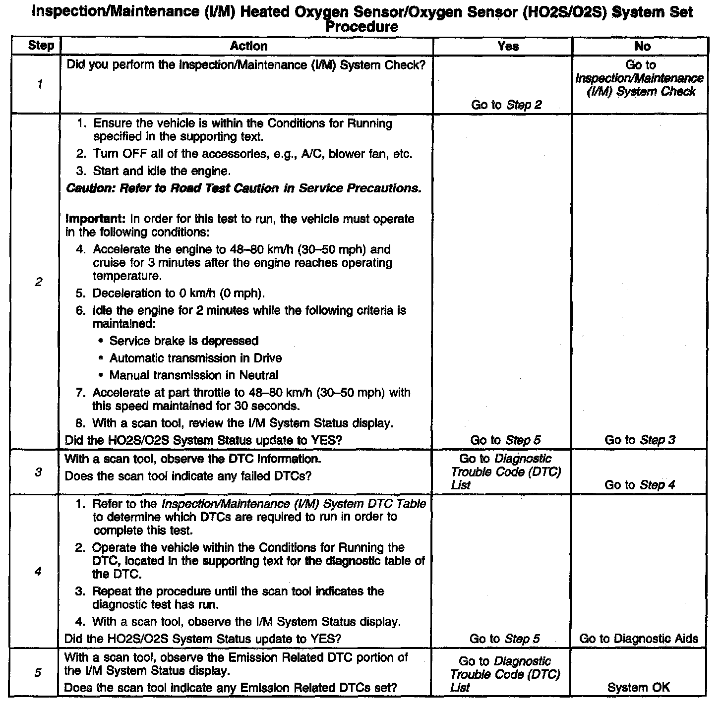 1. Make sure you perform the I/M System Check before performing this test. Failure to do so may result in difficulty updating the status to YES. Inspection/Maintenance (I/M) System Check