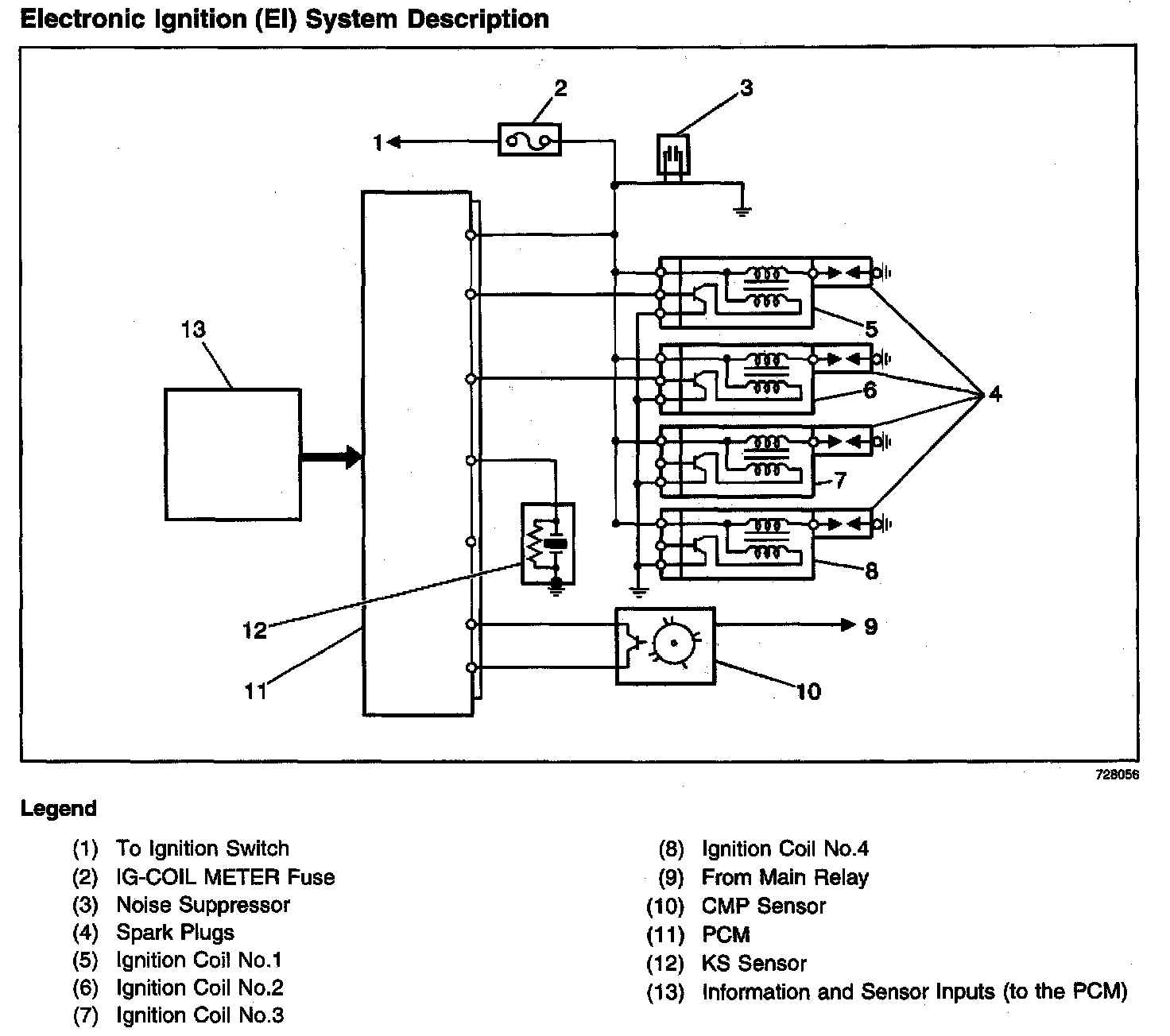 The electronic ignition system used in the 2.0L engine is a coil-on-plug design that is controlled by the Powertrain Control Module (PCM).