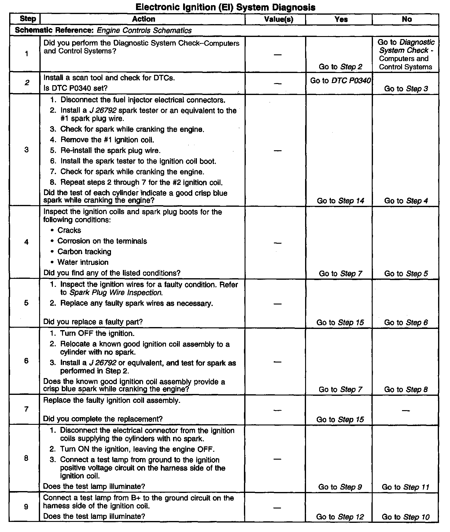 15. This step checks whether the engine will start and run. A repair that has been performed leading to this step may only have been a contributing cause of a no start condition. Returning to the Engine Cranks But Does Not Start diagnostic table will locate additional causes of the no start condition.