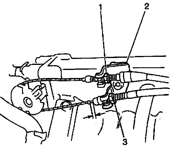 20. Install the shift cable and retainer (4) to the cable (3) bracket (1).