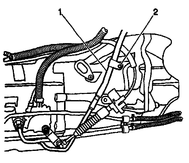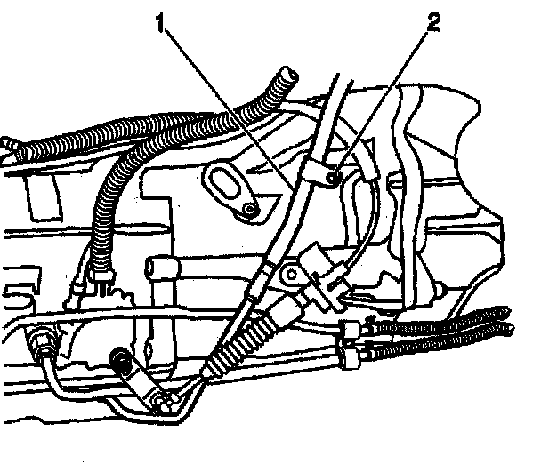22. Remove the vehicle speed sensor bolt (1) and the vehicle speed sensor (2).