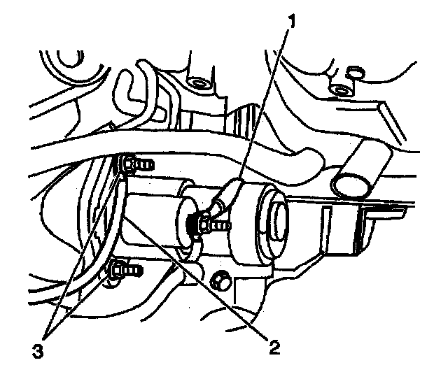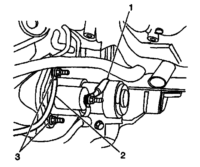 8. Remove the upper starter bolts (3) and the starter nuts.