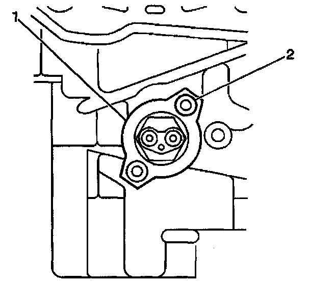 2. Insert the engine coolant heater (1) into the hole in the engine block.